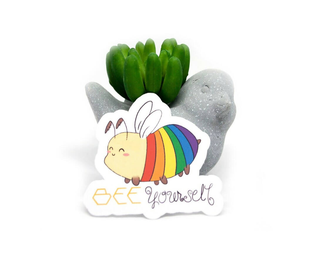 Bee yourself rainbow bee sticker