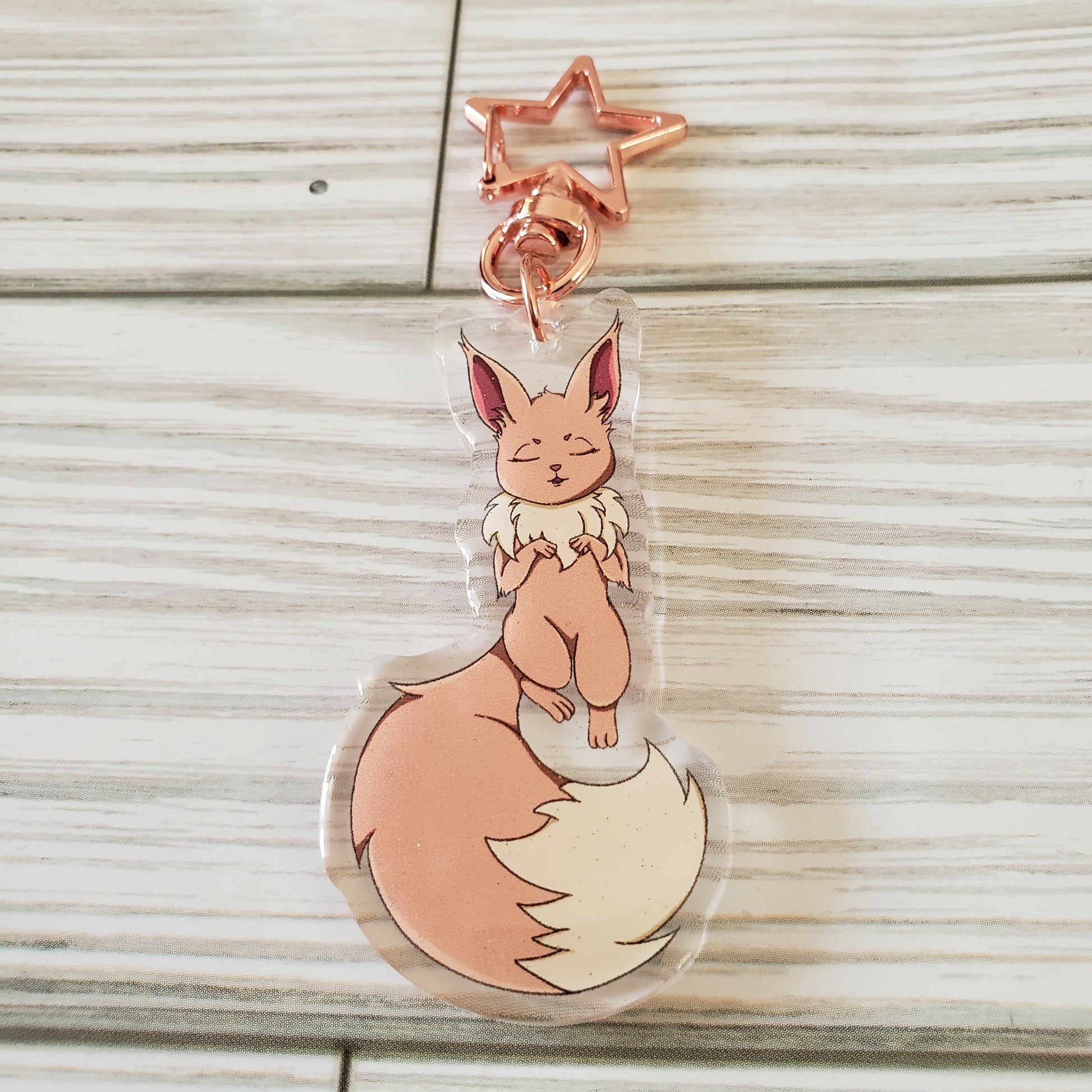 Decorate your favorite carrying case, coat, phone, or whatever you like, with this cute and sparkly Eevee fox key chain featuring my original illustrations!