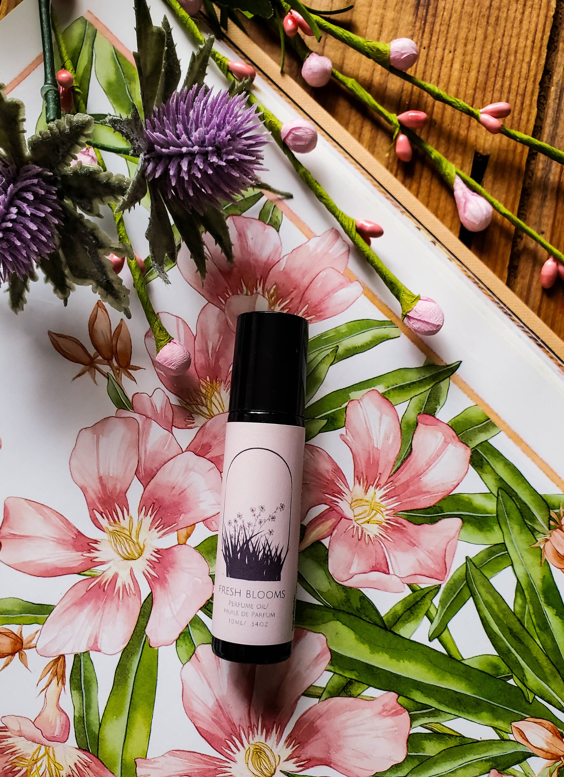 Fresh Blooms perfume oil has notes of fresh cut flowers, and fields of wild flowers after a spring rain. Sweet and floral!