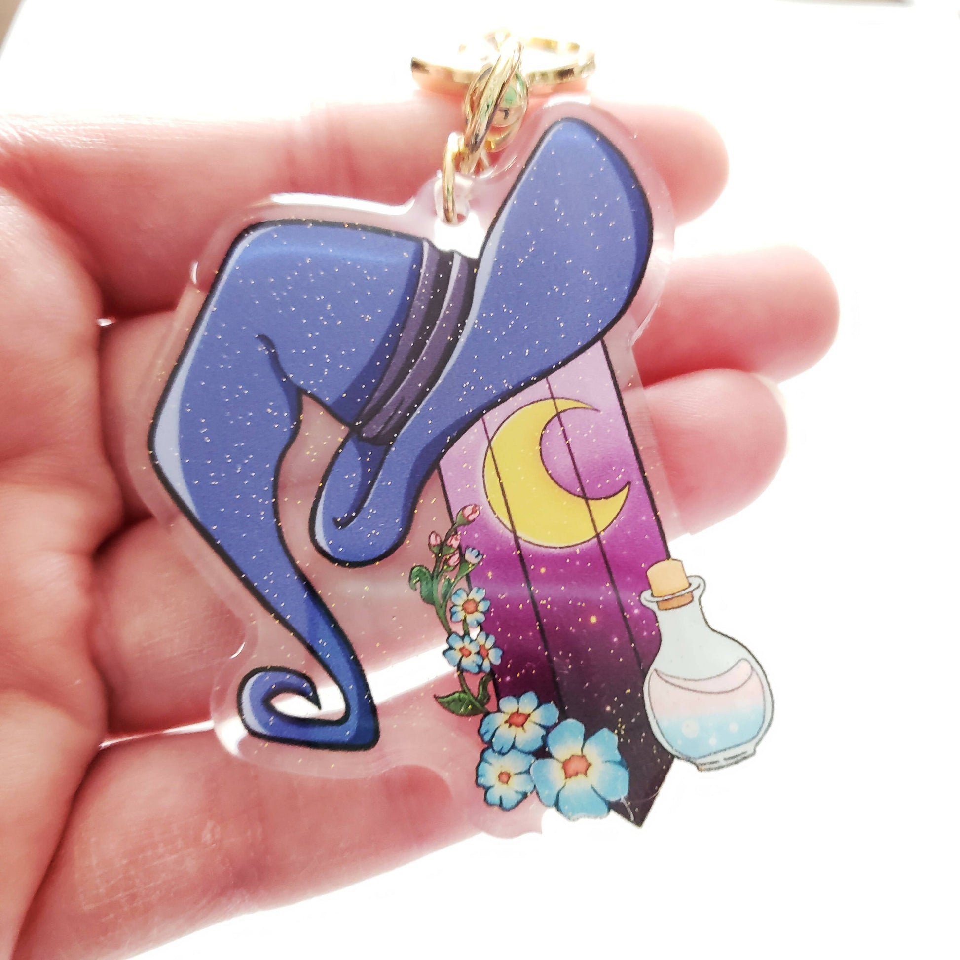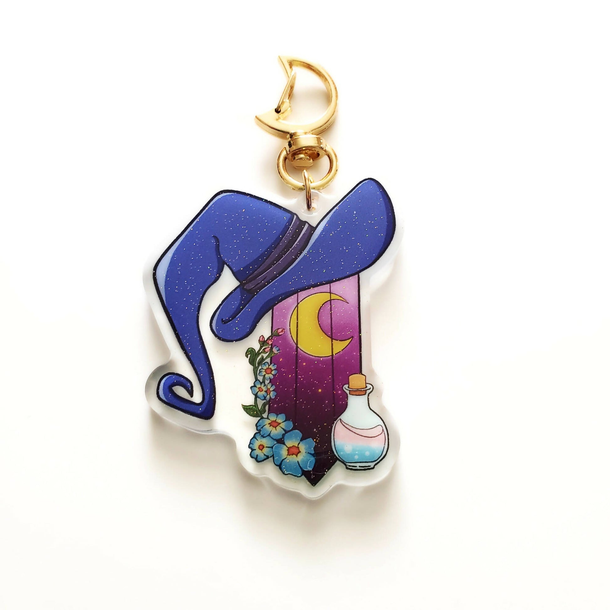 Decorate your favorite carrying case, coat, phone, or whatever you like, with this beautiful and sparkly witchy key chain featuring my original illustrations!